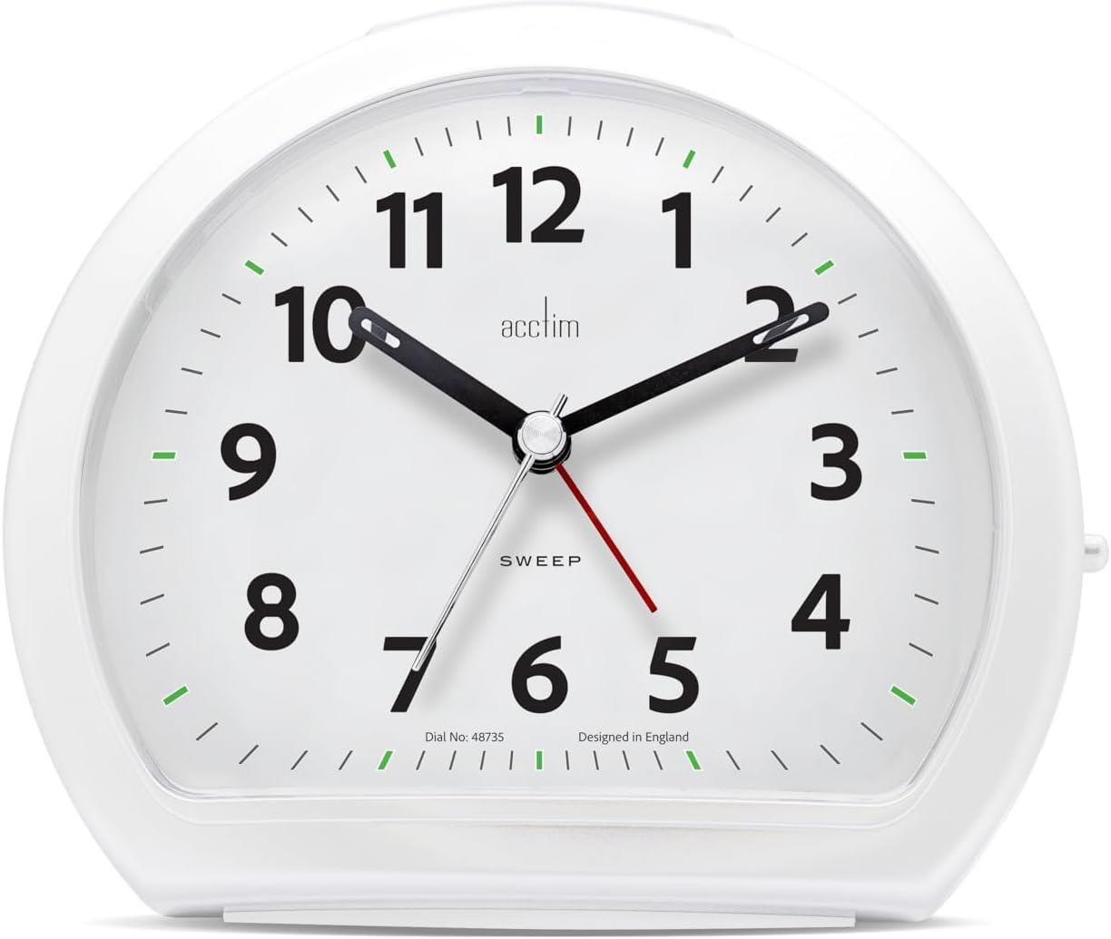 Acctim Colm Smartlite Non-Ticking Sweep Alarm Clock, White