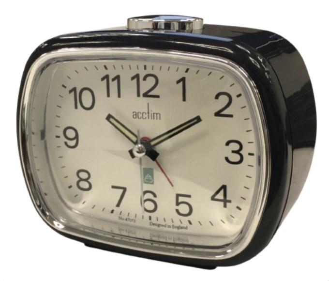 Acctim Camille Analogue Quartz Luminous Hands Chrome Bezel Alarm Clock Black