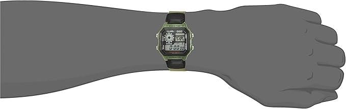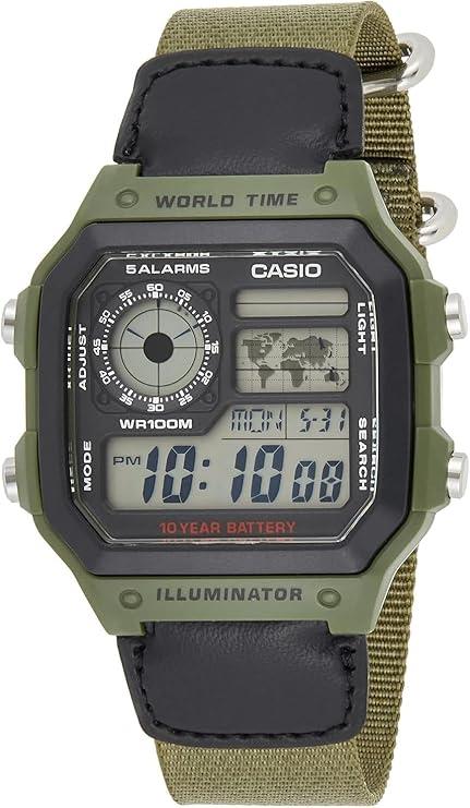 Casio Mens Digital World Time Alarm Green Velcro Strap Watch