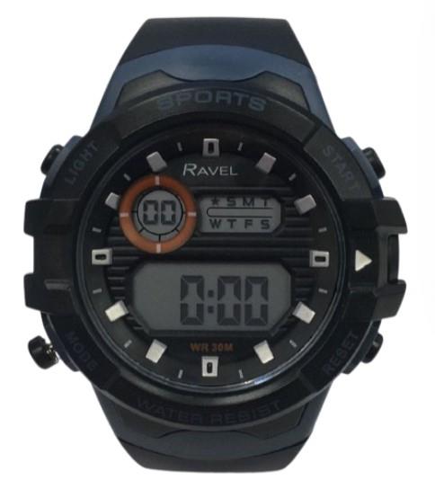 Ravel Mens 3ATM Digital Sports Black/Blue Watch RDG.14.32