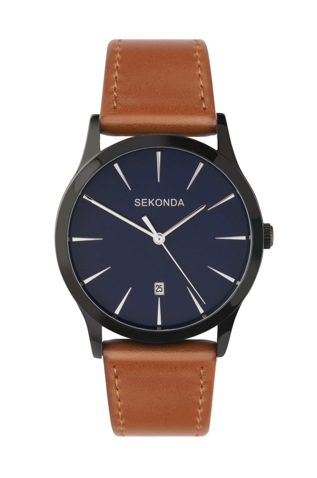 Sekonda Mens Analogue Quartz Watch with Blue Dial and Brown Leather Strap 1514