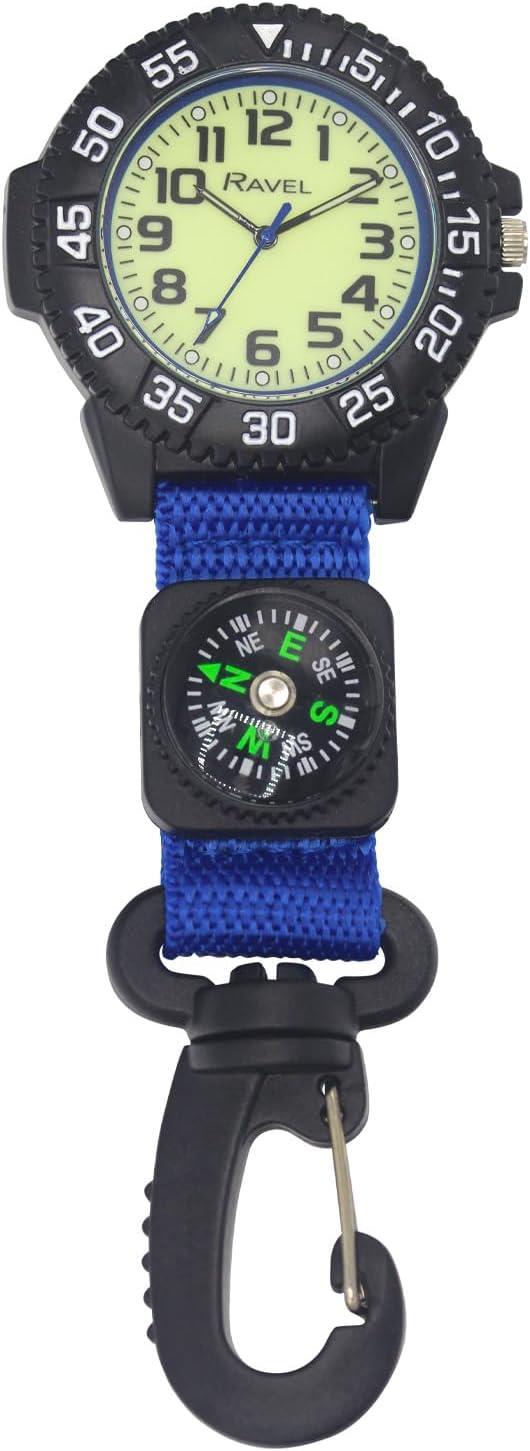 Ravel Mens Fashion Blue Nylon Clip-On Carabiner with Compass and Luminous Dial Analogue Watch