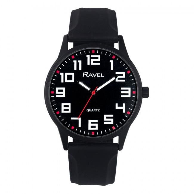 Ravel Mens Sports Black Dial Black Silicone Strap Watch