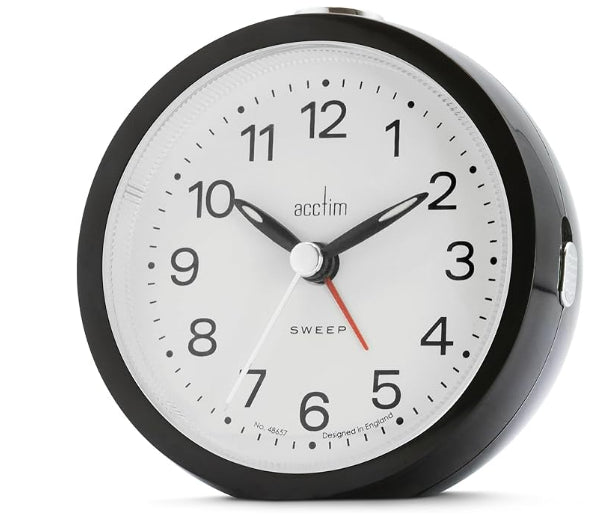 Acctim Elana White Non-Ticking Sweep Analogue Alarm Clock 15762 Product description The round Elana alarm clock has non-ticking sweep seconds hand with Quartz movement for precision timekeeping. It comes with an alarm with a snooze function and a light, plus luminous tipped hands for easy nighttime visibility. Non-ticking sweep seconds hand Quartz movement Luminous tipped hands Alarm with snooze function and light