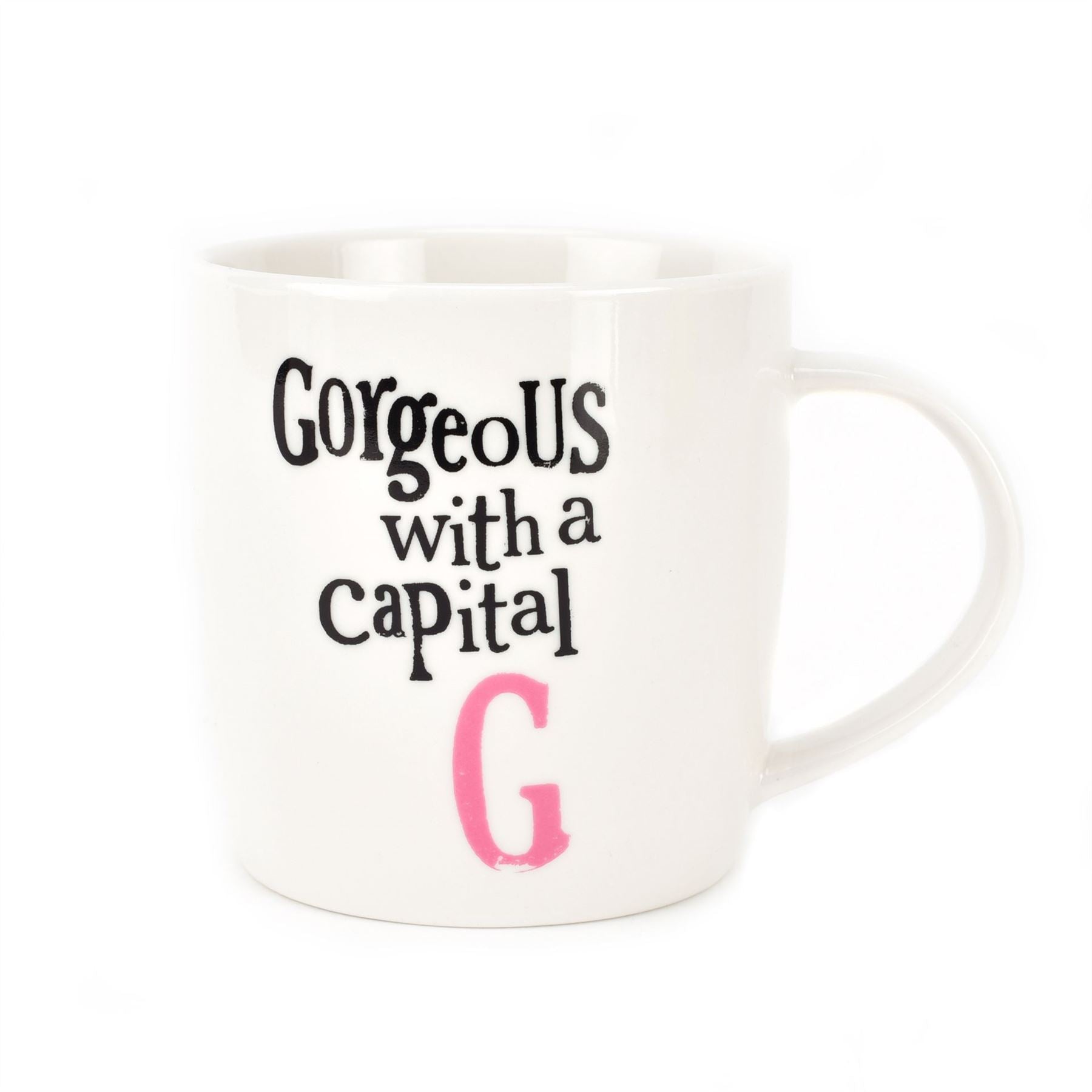 Remind a special someone just how gorgeous they are with this uplifting, quirky mug. Perfect for adding a smile to early morning coffee time. Details: - Porcelain - White mug - Black and white text - 'Gorgeous with a capital G' sentiment - Complete with mini card