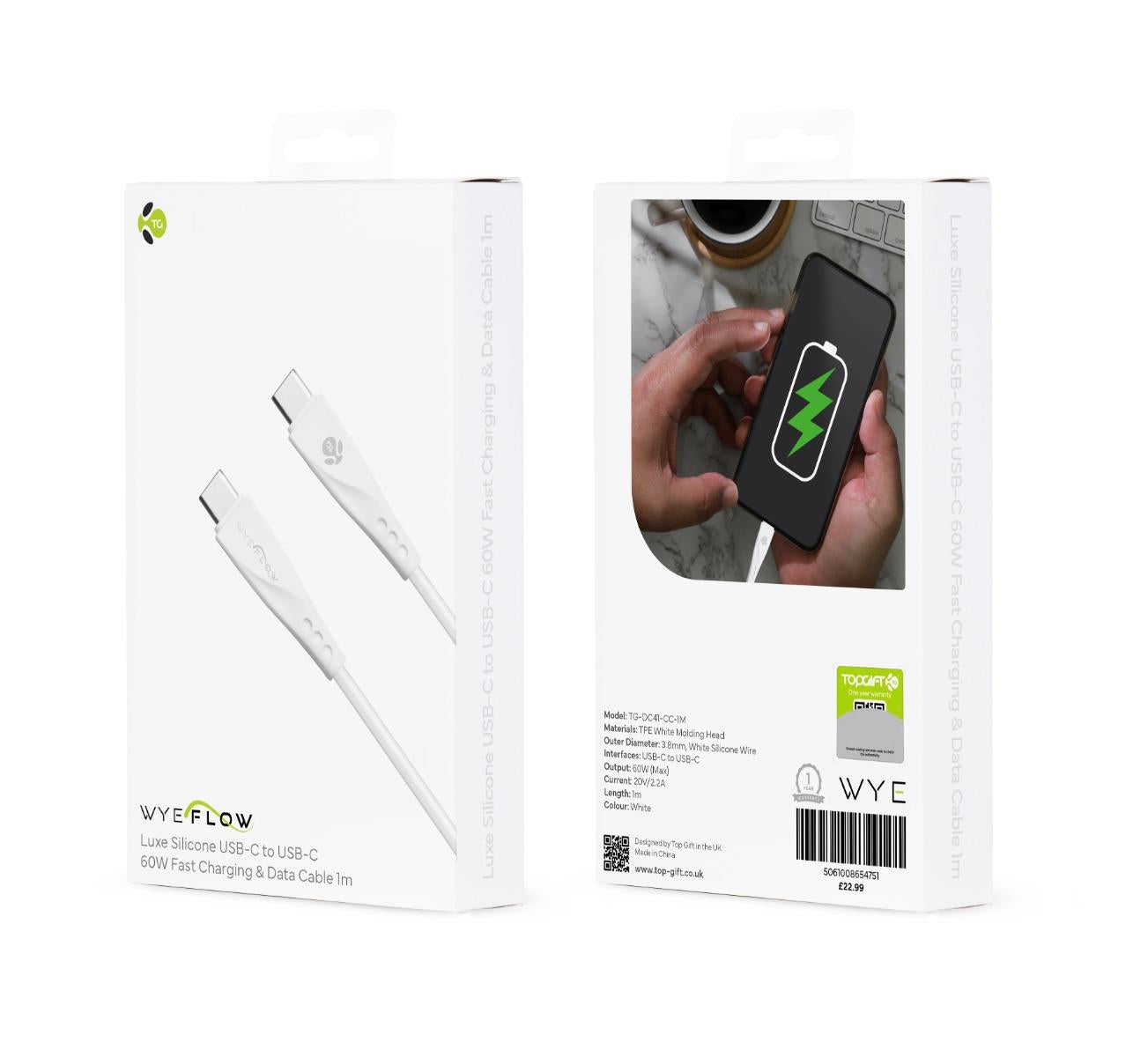 Fast Charging 60W WYEFLOW Luxe Silicone USB-C to USB-C 60W Fast Charging & Data Cable 3m