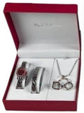 Paul Salatini Ladies Bling Red Dial Silver Barcelet Watch Gift Sets 8085R