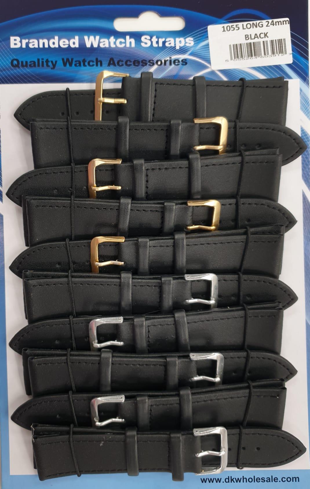 Leather Black Extra Long Watch Straps Pk 10 size 24mm 1055.05