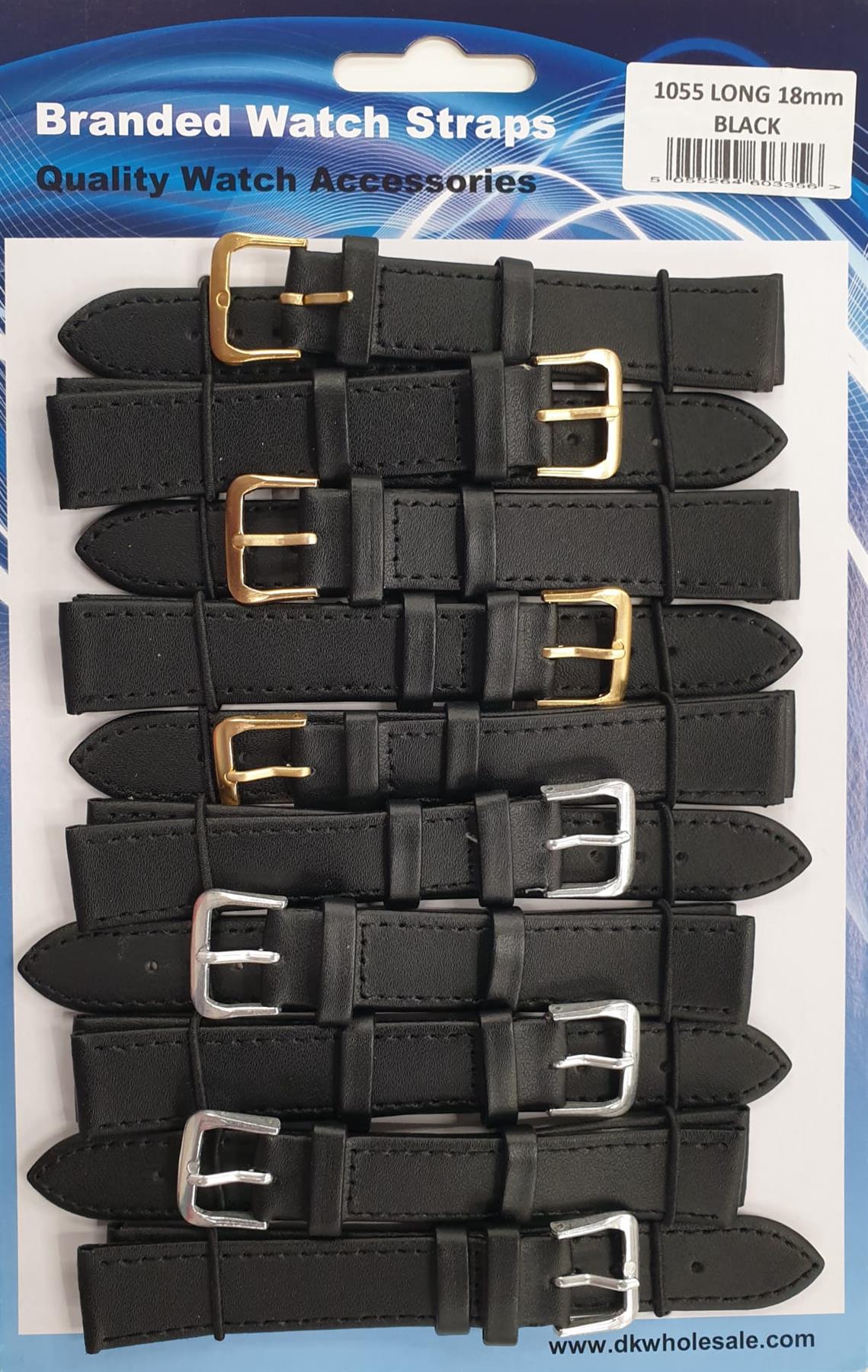 Leather Black Extra Long Watch Straps Pk10 size 18mm 1055.05