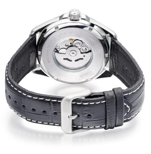 Lorus Mens Automatic Date Black Dial Black Leather strap Watch RU411AX9