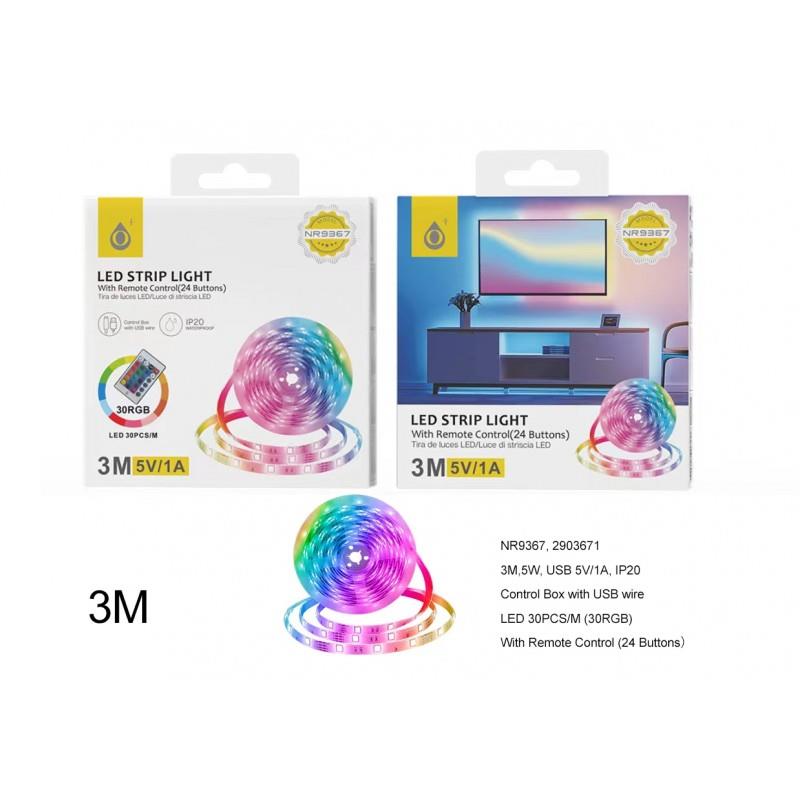 NR9367 RGB LED Strip Light IP20, 3m, 5V, USB 5V/1A